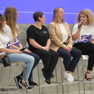 Persönliche Einblicke gab anschließend die Spotlight-Session mit Nadine Petermann (ZVEI), Katja Schuster (Women in KNX), Christina Geier (ABB AG – Busch-Jaeger), Silke Dietz (UNI ELEKTRO), Jacqueline Swiencki und Lea Bultmann (Informationselektronikerin). Die Teilnehmerinnen berichteten von ihren unterschiedlichen Wegen in die Elektrobranche und von Erfahrungen im Berufsalltag.