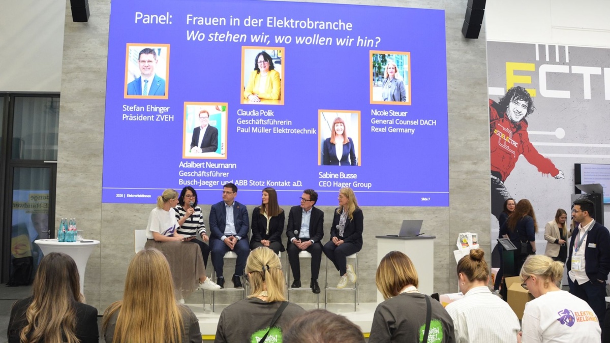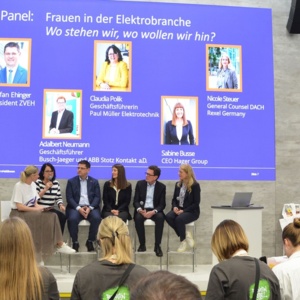 Im Zentrum der Veranstaltung stand eine Panel-Diskussion mit Stefan Ehinger (ZVEH), Adalbert Neumann (ABB AG – Busch-Jaeger), Sabine Busse (CEO Hager), Claudia Polik (Paul Müller Elektrotechnik) und Nicole Steuer (Rexel). Die Runde diskutierte über den Status quo der Branche, über Barrieren und darüber, warum Diversität auch wirtschaftlich relevant ist. Sabine Busse betonte die enorme Bedeutung der Branche für die Zukunft. "Es ist eine Branche, ohne die es nicht funktioniert – ohne Elektrizität und Energie gibt es kein modernes Leben", sagte sie und verwies auf die Chancen durch Elektrifizierung und Digitalisierung. Adalbert Neumann hob hervor, dass vielfältige Teams auch innovationsstärker sind. Erfahrungen im Unternehmen hätten gezeigt, dass gemischte Teams langfristig bessere Ergebnisse erzielen. "In dem Moment, in dem sie sich gefunden haben, waren die Ergebnisse innovativer, besser und schneller zu erreichen."