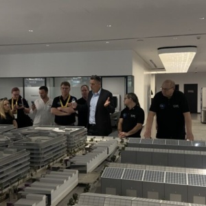 Den fachlichen Auftakt bildete der Besuch der Fachmesse Light + Intelligent Building Middle East. Johannes Möller, Group Show Director, Building Technologies Shows bei der Messe Frankfurt Exhibition GmbH, und Heinz Lux, CEO der KNX Association, führten die Teilnehmer über die Messe und gaben einen konzentrierten Überblick über technologische Trends und Lösungen für vernetzte Gebäude. In der Premium Lounge bot sich anschließend Raum für Gespräche über internationale Projektanforderungen und regionale Besonderheiten.