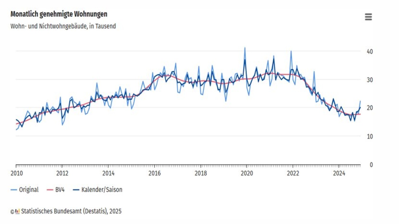 Rückgang der Zahl der Baugenehmigungen verlangsamt sich im 2. Halbjahr 2024